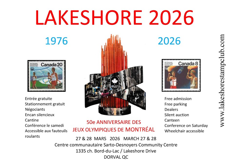 La 62e exposition philatélique du Lakeshore aura eu lieu les 27 et 28 mars 2026.